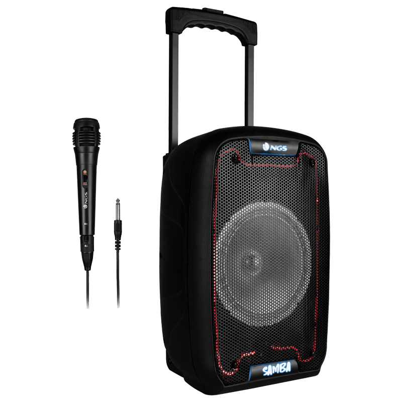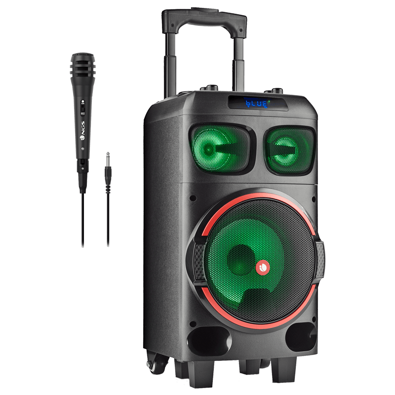 ALTAVOZ PARA FIESTA PORTÁTIL DE 30W CON LUCES LED. COMPATIBLE CON TECNOLOGÍA BLUETOOTH Y TWS. LECTOR MICRO SD/USB Y AUX. 4 HRS DE BATERÍA. MICRÓFONO CON CABLE.